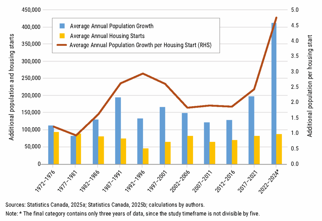 (10) Altus Group Economic Consulting, Based on CMHC and Statistics Canada – Average Annual Housing Starts and Changes in Population in Ontario (1972-2023).