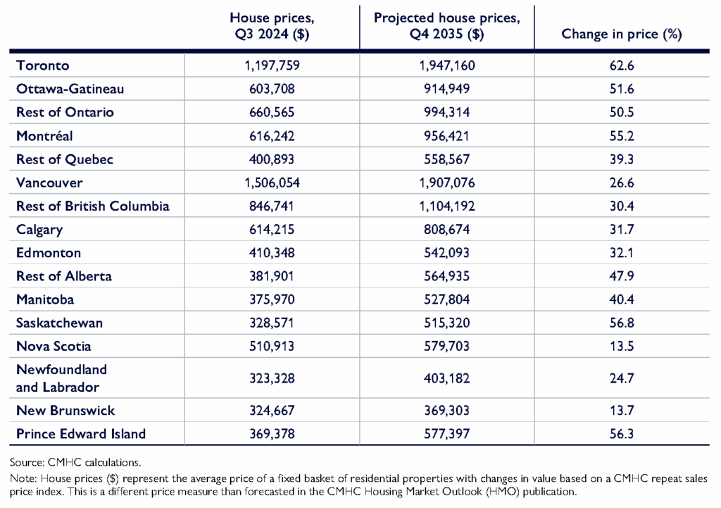 CMHC Projected Home Prices Q3 2024 and Q4 2035(9)