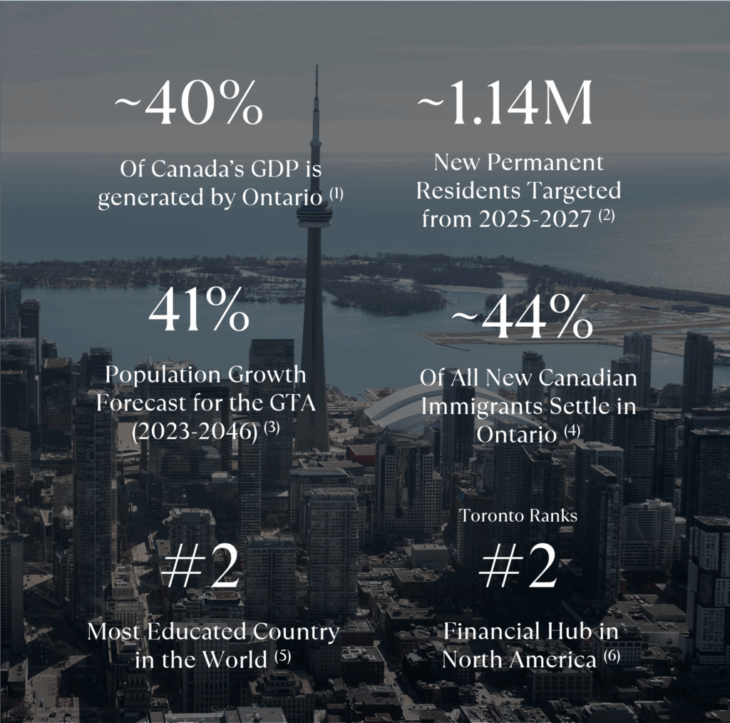 - With the GTHA and Greater Golden Horseshoe (GGH) at its core, Ontario generates nearly 40% of Canada’s GDP. Anchored by world-class universities and vibrant economic hubs, the region continues to attract talent, investment, and newcomers.(1)